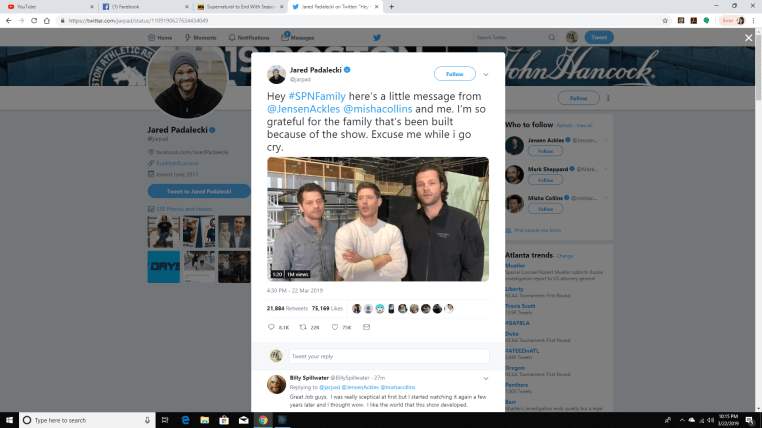 Supernatural Ending at 15 Seasons 23 Saturday Mar 2019 Original size at 1920 × 1080 ≈ Comments Off on JarPad Twitter