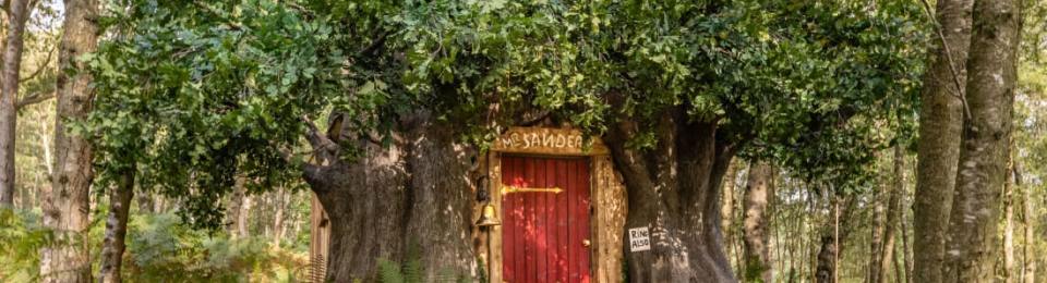 The one-room house has all the hallmarks of Pooh’s house. Kim Raymond, who has illustrated the Pooh books for 30 years, incorporated small details into the construction of the house, which sits along the Ashdown Forest in East Sussex, England. A.A. Milne lived here and based his famous Hundred Acre Wood on the forest.
