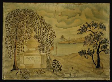 Source: Mourning Sampler, 1828 with later additions, unknown artist. Public domain because it was published (or registered with the U.S. Copyright Office) before January 1, 1931. Accessed via Wikimedia Commons.