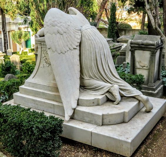 William died in his sleep a year later. He is buried beneath the sculpture with the love of his life. The monument sits in Campo Cestio, also called the Protestant Cemetery or the Cemetery for the Non-Catholic Foreigners. It may be viewed during posted business hours. If you’re unable to see it in person, you can visit some of the copies in America. I cannot state if the cemetery is haunted; however, I can tell you that it has some of the most beautiful funerary monuments that I’ve ever seen in one location. It also has about 40 cats that roam the cemetery listening to classical music when the cemetery closes for the day. Well worth a visit, in our post-COVID world.