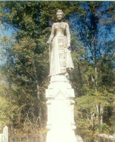 Let’s begin with the details we know. Laura Mitchell was born on November 15, 1852. She did, in fact, marry Clay and bore five children. Laura did die at the young age of 38 on November 29, 1890. And, finally, Clay did erect a large statue in her likeness. The height is between 15-20 feet high.