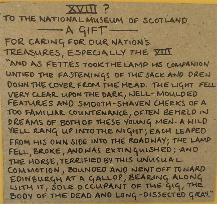 Stories continue to fill news feeds as the coffins capture our imaginations. In December of 2014, the museum received a replica coffin with a label quoting a portion of Robert Louis Stevenson’s “The Body Snatcher” (1884). (Link to the story can be found here: https://robert-louis-stevenson.org/?works_post_type=the-body-snatcher-1884.)