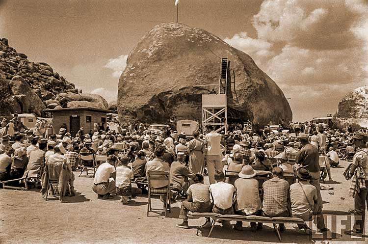 People gathering for one of the UFO conventions held at the Giant Rock.
